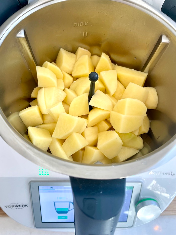 If you own a Thermomix, mashed potatoes become incredibly easy and consistently creamy. What fascinated me the most was that the potatoes get boiled in milk instead of water. I think that is the secret to creamy mashed potatoes.