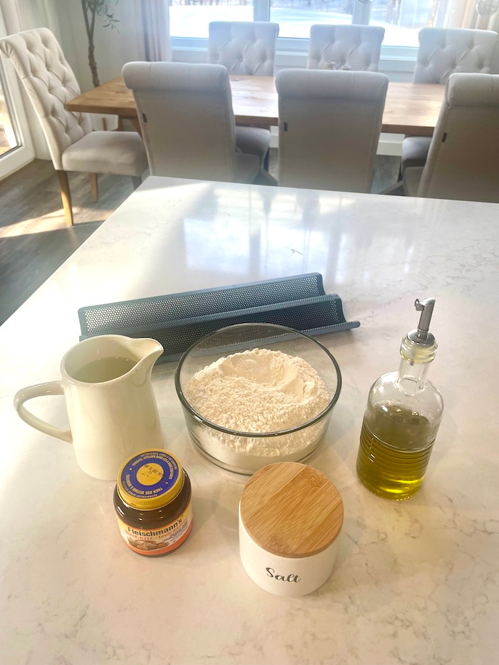 You only need 4 simple ingredients that everyone has at home to make these delicious baguettes. I will show you step by step how to accomplish the texture and crunchiness that everyone is looking for. I bought a baguette baking pan from amazon which is the secret to a crisp golden brown crust. The air circulates freely around the dough creating that deep crust and even baking. If you don’t own one that is totally ok too, I will show you how you can achieve their signature texture without the pan. This recipe is made in a Thermomix but it can also be easily made by hand.