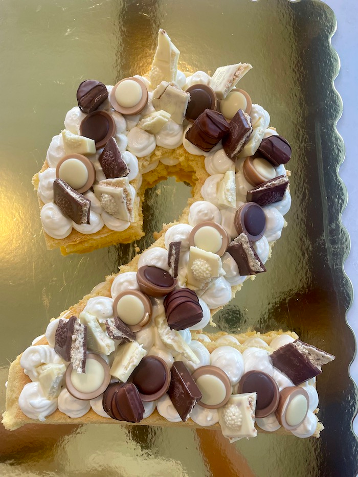 You can also use the sponge cake as a number cake for birthdays. I used it for my little boy’s second birthday and it turned out amazing. The sponge is so soft and fluffy.
