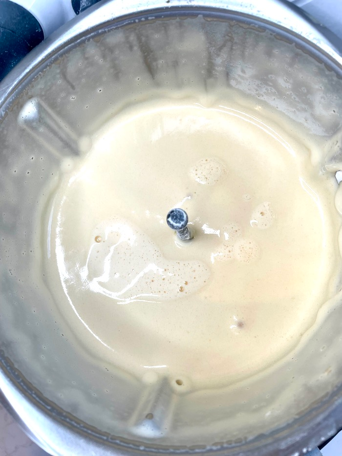 - Add softened room temperature cream cheese and mix for 10 sec/speed 3.