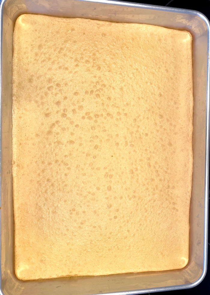 - Remove the sponge cake and let it cool for 20 minutes.