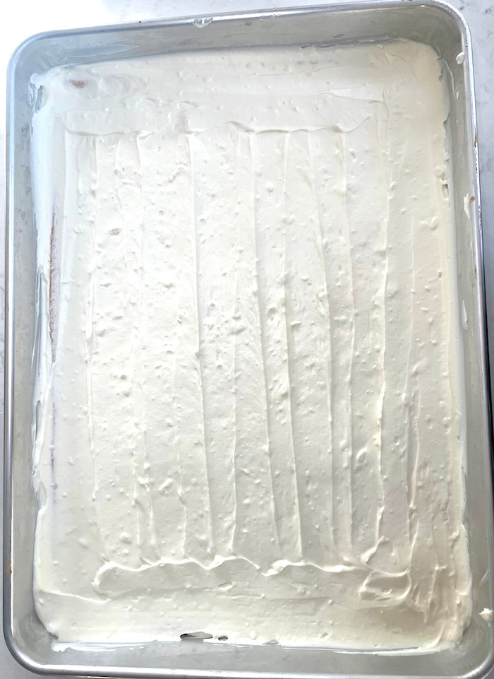- Spread the cream evenly onto the sponge cake.